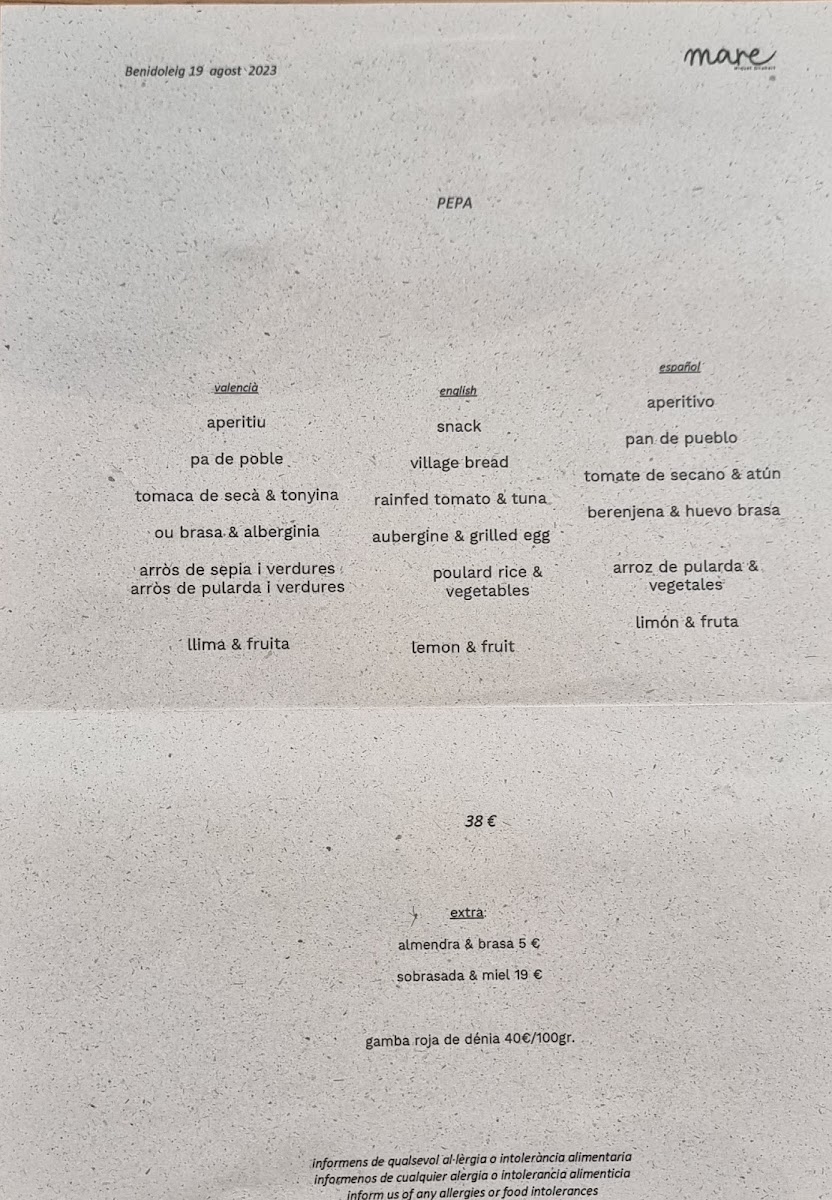 Welcome to Mare restaurant, a hidden gem located in Benidoleig, Alicante. This intimate establishment offers a creative menu that highlights the richness of local seafood and regional products, all prepared with care and passion. Guests are delighted by dishes cooked in a traditional wood oven, adding a unique flair that sets Mare apart.